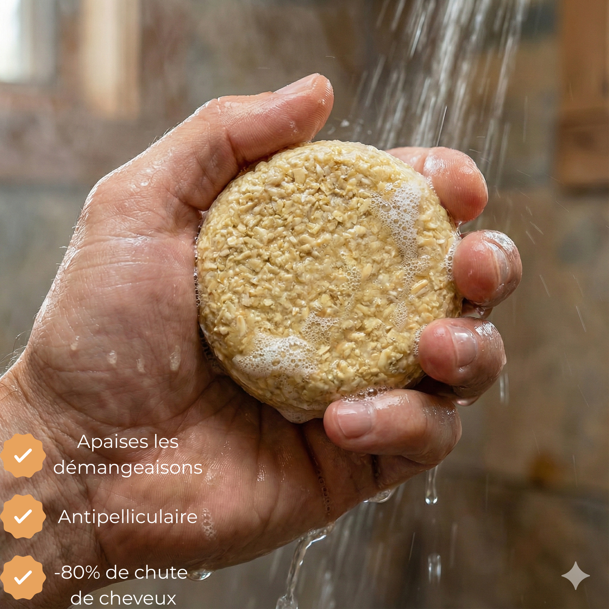 Contrairement aux shampoings liquides composés à 80% d'eau et de silicones qui étouffent le bulbe, notre formule solide délivre les nutriments essentiels directement là où tout se joue : à la racine.